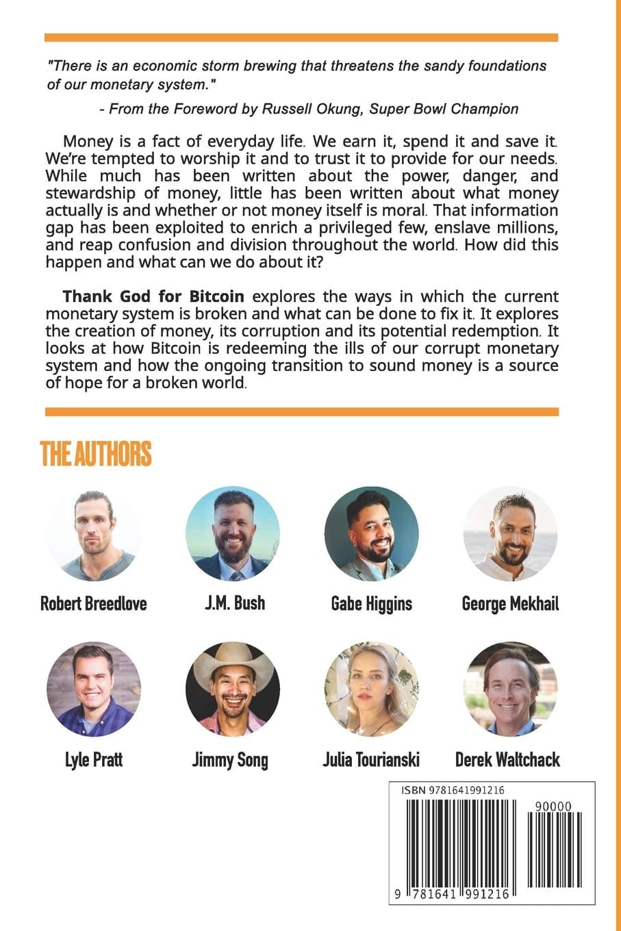 Thank God for Bitcoin examines money through historical, economic, and Biblical lenses to answer a rarely asked question: is money itself moral? Tracing the creation of money, its corruption through centralized control, and its possible redemption, the book argues that broken monetary systems fuel injustice and division, while presenting Bitcoin as a hopeful path toward sound money aligned with human freedom, responsibility, and long-term flourishing.